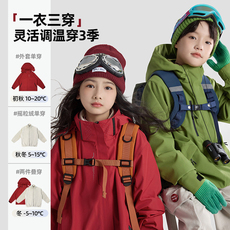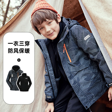 拓路者儿童冲锋衣三合一男童女童可拆卸秋冬外套加绒衣服防风防雨