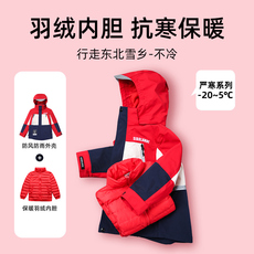 东北防寒滑雪服套装女童2025冬季男童户外防水三合一冲锋衣羽绒服