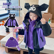 女童库洛米冲锋衣秋冬装2025新款小女孩可拆卸三合一加厚保暖外套