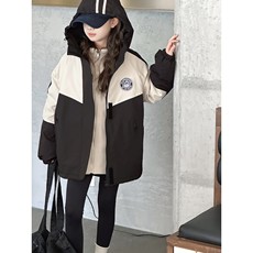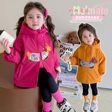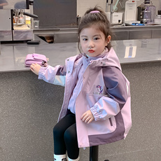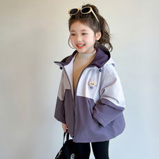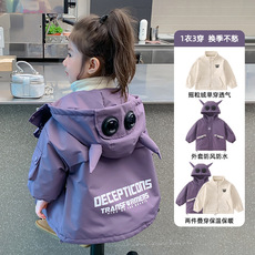 女童秋装外套2025新款儿童女孩秋冬季三合一可拆卸卡通拼色冲锋衣