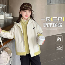 女童三合一冲锋衣秋冬季加厚可拆卸儿童风衣洋气户外防风宝宝外套