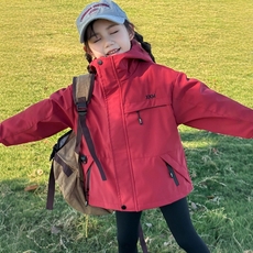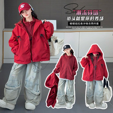 儿童冲锋衣秋季女童外套2025新款儿童红色三合一户外运动防风上衣