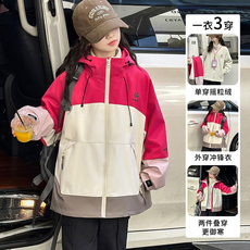 女童冲锋衣外套秋冬款可拆卸三合一2025新款中大童连帽休闲运动装