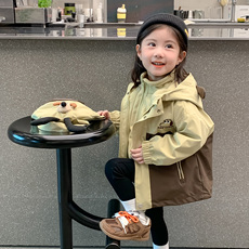 女童春秋冬装新款洋气儿童可拆冲锋衣加绒卡通拼色三合一保暖