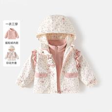 女童连帽冲锋衣2025秋冬新款1岁宝宝三合一碎花保暖外套婴儿冬装3