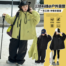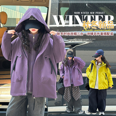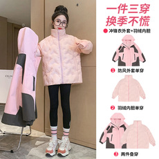 女童冲锋衣三合一可拆卸新款洋气秋冬防风衣保暖初中生夹克外套潮