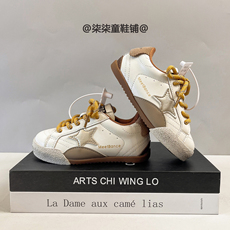 儿童五角星休闲板鞋2025秋季新款真皮透气男童德训鞋子女童运动鞋