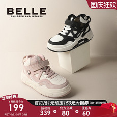 百丽童鞋女童高帮板鞋2025冬季新款男童休闲鞋加绒运动鞋儿童棉鞋
