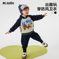 马拉丁童装儿童卫衣冬装新款男童女童大童小童加绒插肩袖卫衣