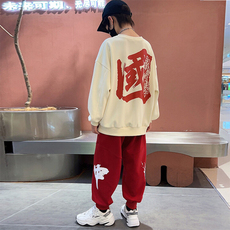 嘻哈童装潮牌街舞爵士舞服装女童卫衣宽松加绒套装2023秋冬新款厚