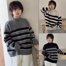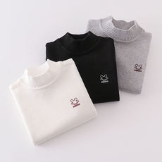 儿童毛衣秋男童女童圆领套头针织衫冬中小童高领加绒加厚打底衫