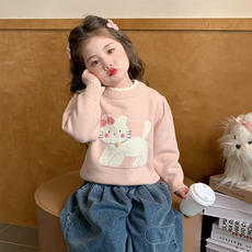 加厚水貂绒女童毛衣秋冬2025新款洋气针织衫女大童圆领套头打底衫