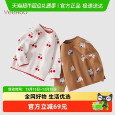 儿童加绒徽章卫衣新款宝宝秋冬保暖针织毛衣男女童圆领套头打底衫