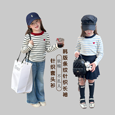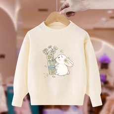 女童纯棉毛衣薄款春秋装2025新款儿童圆领针织打底衫女孩春季上衣
