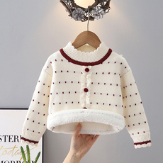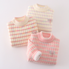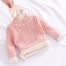 女童圆领一体绒毛衣儿童秋冬季加绒套头针织衫宝宝加厚保暖打底衫