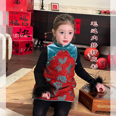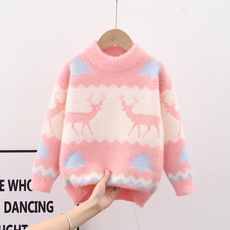 女童毛衣水貂绒加厚秋冬装儿童宝宝洋气中大童圆领加绒针织打底衫