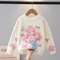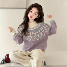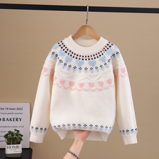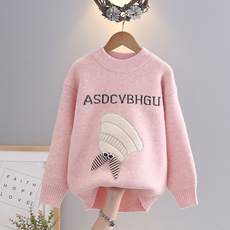 女童秋冬毛衣2025新款大童冬季加厚保暖针织衫儿童冬装圆领打底衫