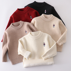 儿童毛衣加绒加厚秋冬新款女童毛衣童装男童圆领打底针织衫套头潮