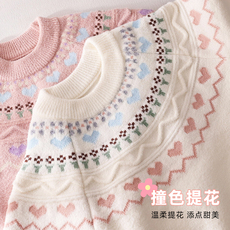 2025新款冬装女童毛衣加绒加厚宝宝圆领针织衫婴儿套头打底衫韩版