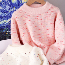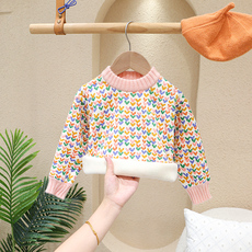 女童卡通彩点毛衣加厚儿童甜美圆领保暖针织衫冬装宝宝秋款打底衫