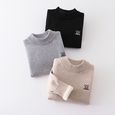 快活龙圆领加绒毛衣新款秋冬儿童女童打底纯棉保暖针织衫男童套头