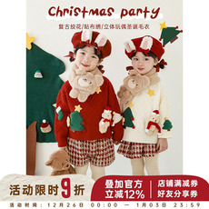 男女童毛衣秋冬新款可爱圣诞红色上衣韩版宝宝加厚加绒套头针织衫
