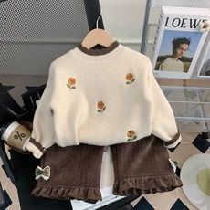 女童毛衣洋气2025秋冬新款韩版刺绣毛衣幼儿园宝宝套头打底针织衫