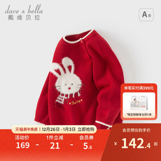 戴维贝拉女童毛衣套头衫保暖冬季新款宝宝红色针织衫儿童新年上衣