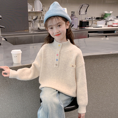 戴维贝拉女童半高领毛衣2025冬季新款中大童洋气针织衫儿童套头衫