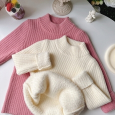 2025秋冬新款女童一体绒毛衣加厚加绒针织衫内搭羊羔绒套头圆领