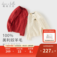 戴维贝拉儿童毛衣套头衫2025冬季款男女童羊毛针织衫新年红色上衣