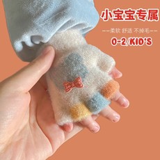 爆款0-2岁小宝宝手套秋冬季婴幼儿男女童卡通可爱加绒半指截针织