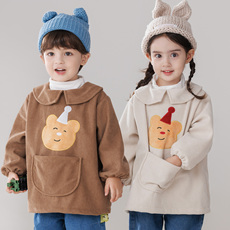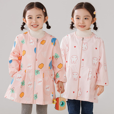 女童秋冬长袖罩衣羽绒服防脏护衣外套按扣罩衫宝宝可爱防水吃饭衣