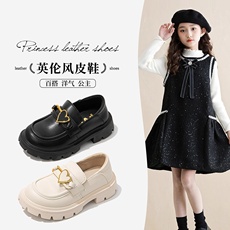 女童鞋子儿童公主小皮鞋2025春秋新款软底黑色女孩乐福鞋英伦单鞋