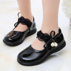 女童黑色真皮鞋演出鞋真皮表演鞋公主鞋礼服儿童学生软底单鞋校鞋