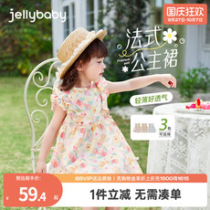 迷你巴拉巴拉女童宝宝裙子夏季透气纯棉荷叶边小飞袖连衣裙