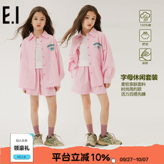 【商场同款】ei童装女童纯棉套装夏装新款长袖衬衫短裤两件套