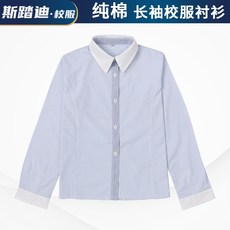 儿童浅蓝色衬衫男童女童长袖衬衣中小学生演出校服纯棉春秋款寸衣