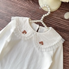 儿童春秋新款纯棉衬衫衬衣女童娃娃领娃娃衫长袖外穿打底森系百搭
