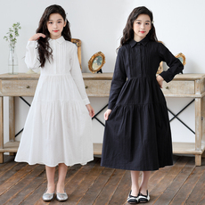 女童连衣裙春秋2024新款纯棉白色衬衫裙中大童森系洋气长袖公主裙