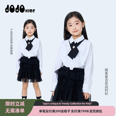 女童衬衫长袖纯棉中大童衬衣翻领女孩白色演出服儿童短裙洋气套装