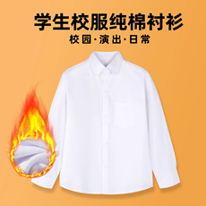 男童白衬衫长袖加绒纯棉演出服女童衬衣中大童衬衫小学生表演校服