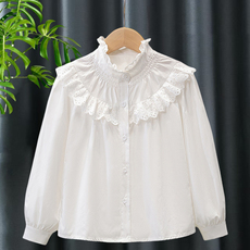 女童白衬衫长袖纯棉花边领秋冬儿童白色衬衣中大童小学生演出校服