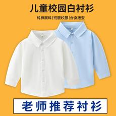 儿童白衬衫男童长袖纯棉秋冬上衣中大童学生演出校服女童白色衬衣