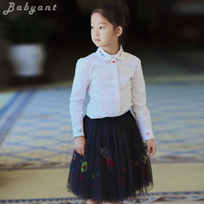 一折!高端童装儿童秋季新款女童长袖衬衣中大童打底纯棉白衬衫