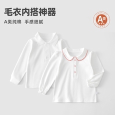 男女童纯棉翻领打底衫春秋款校服衬衫儿童白色百搭长袖T恤中大童