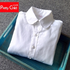 可爱娃娃领儿童纯棉白衬衣 女童全棉翻领长袖百搭校园衬衫 中大童