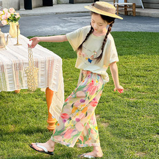 植木童装女童套装2025夏季新款中大童马甲裤子半裙套装儿童套装