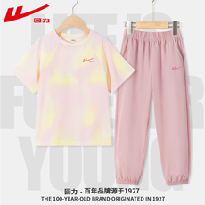 回力童装女童运动套装夏季中大童薄款扎染衣服儿童速干短袖两件套