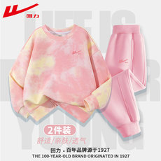 回力童装女童套装春秋款儿童秋季运动扎染卫衣中大童宽松圆领长袖